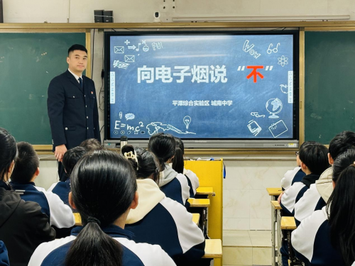 圖為平潭縣局普法工作人員在平潭城南中學(xué)開(kāi)展吸煙(含電子煙)危害健康知識(shí)講座。林兵攝