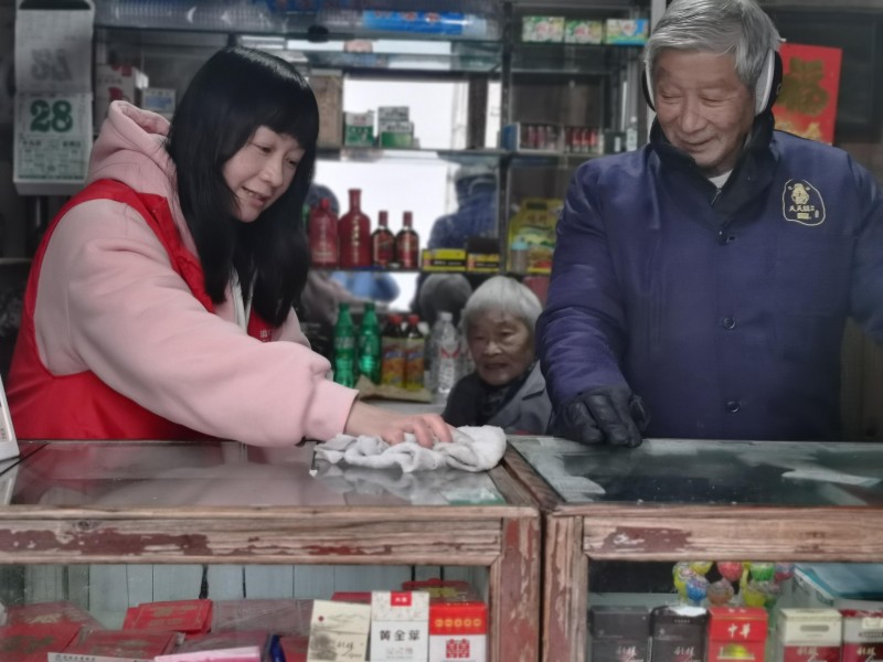 圖為“香溢”志愿者幫助銀發(fā)群體整理店堂。
