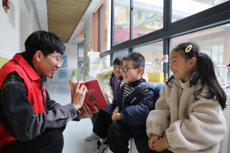 圖為“香溢”志愿者與小朋友共讀《雷鋒日記》 黃貝妮/攝