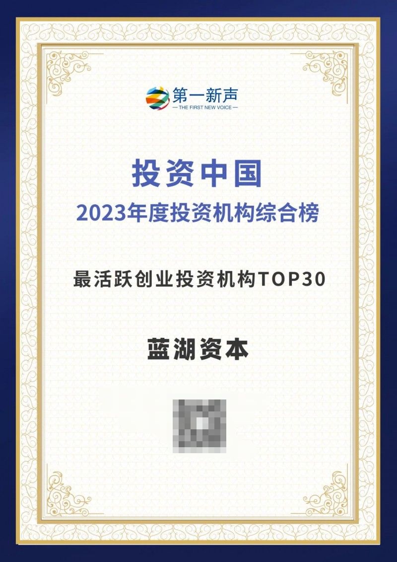 3月6日,第一新聲發(fā)布「投資中國(guó)-2023年度中國(guó)投資機(jī)構(gòu)系列榜單」,藍(lán)湖資本榮登「2023年度中國(guó)投資機(jī)構(gòu)綜合榜最活躍創(chuàng)業(yè)投資機(jī)構(gòu)TOP30」。