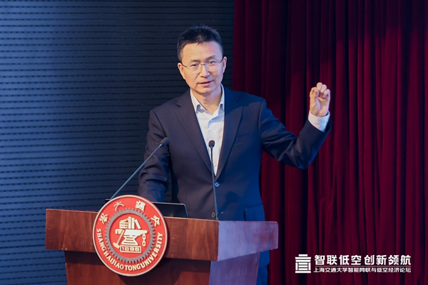 近300位來自航空航運、人工智能、網(wǎng)絡(luò)技術(shù)等領(lǐng)域的知名專家學(xué)者、金融界與產(chǎn)業(yè)界的業(yè)界菁英和校友們共赴盛會,就低空經(jīng)濟產(chǎn)業(yè)動態(tài)、低空智能網(wǎng)聯(lián)技術(shù)、eVTOL(電動垂直起降飛行器)研發(fā)應(yīng)用、低空經(jīng)濟政策及行業(yè)標準解讀、城市空中交通智能大數(shù)據(jù)、低空經(jīng)濟和產(chǎn)融結(jié)合等進行深入交流和探討。上海交通大學(xué)黨委副書記周承致開幕詞。上海交通大學(xué)全球創(chuàng)新研究院院長胡潔主持論壇。