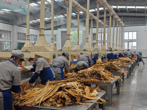 這一過程如同烹飪中的火候掌握,溫度稍高則可能燒焦煙葉,溫度不足則無法達(dá)到預(yù)期效果。因此,生產(chǎn)加工車間的工人們憑借著豐富的經(jīng)驗(yàn)和精確的設(shè)備調(diào)控,確保了每一批煙葉都能在最適宜的環(huán)境下完成蛻變。在復(fù)烤機(jī)器的轟鳴聲中,煙葉的水分被緩緩蒸發(fā),香氣被逐步激發(fā),顏色也變得更加均勻。經(jīng)過精心復(fù)烤的煙葉其香氣更加濃厚且富有層次感,口感則更為醇厚飽滿。它們經(jīng)過包裝以后將被送往各工業(yè)客戶所在的卷煙廠,作為原料應(yīng)用于各類煙草制品之中。