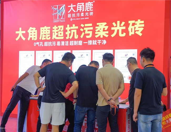 作為新品正式發(fā)布后的首次大型展會亮相,大角鹿及其超抗污柔光磚無疑成為了本次展會最受矚目的焦點,吸引了眾多經(jīng)銷商及消費者慕名而來。