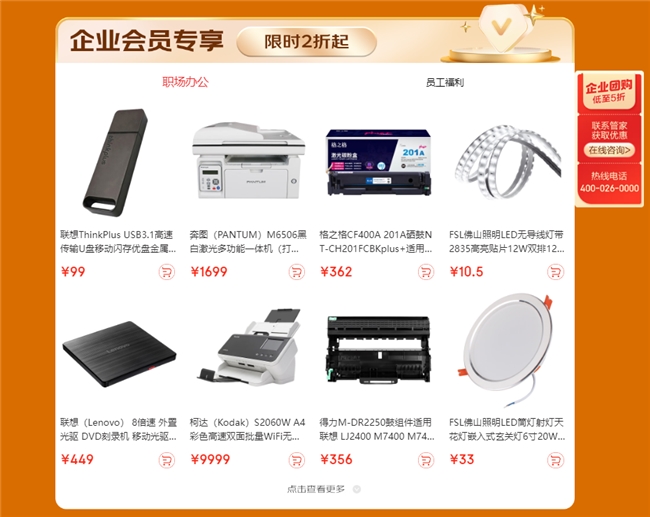 隨著企業(yè)經(jīng)營管理的精細化發(fā)展以及人才對于企業(yè)創(chuàng)新發(fā)展的價值凸顯,企業(yè)對市場營銷及員工福利物資的個性化、場景化需求越發(fā)強烈。在員工福利專區(qū),京東企業(yè)購集結(jié)了包括茶歇福利、電子數(shù)碼、日用福利、健康養(yǎng)生等多品類實物商品以及京東E卡等虛擬商品,大大增加了企業(yè)的福利選擇空間與自由度。