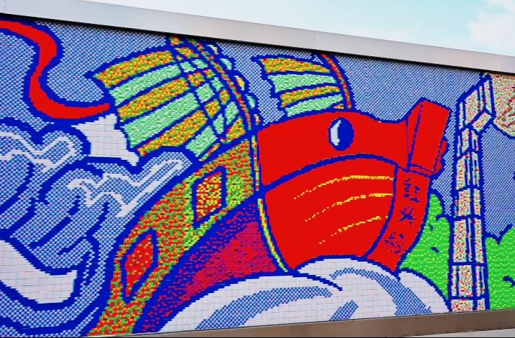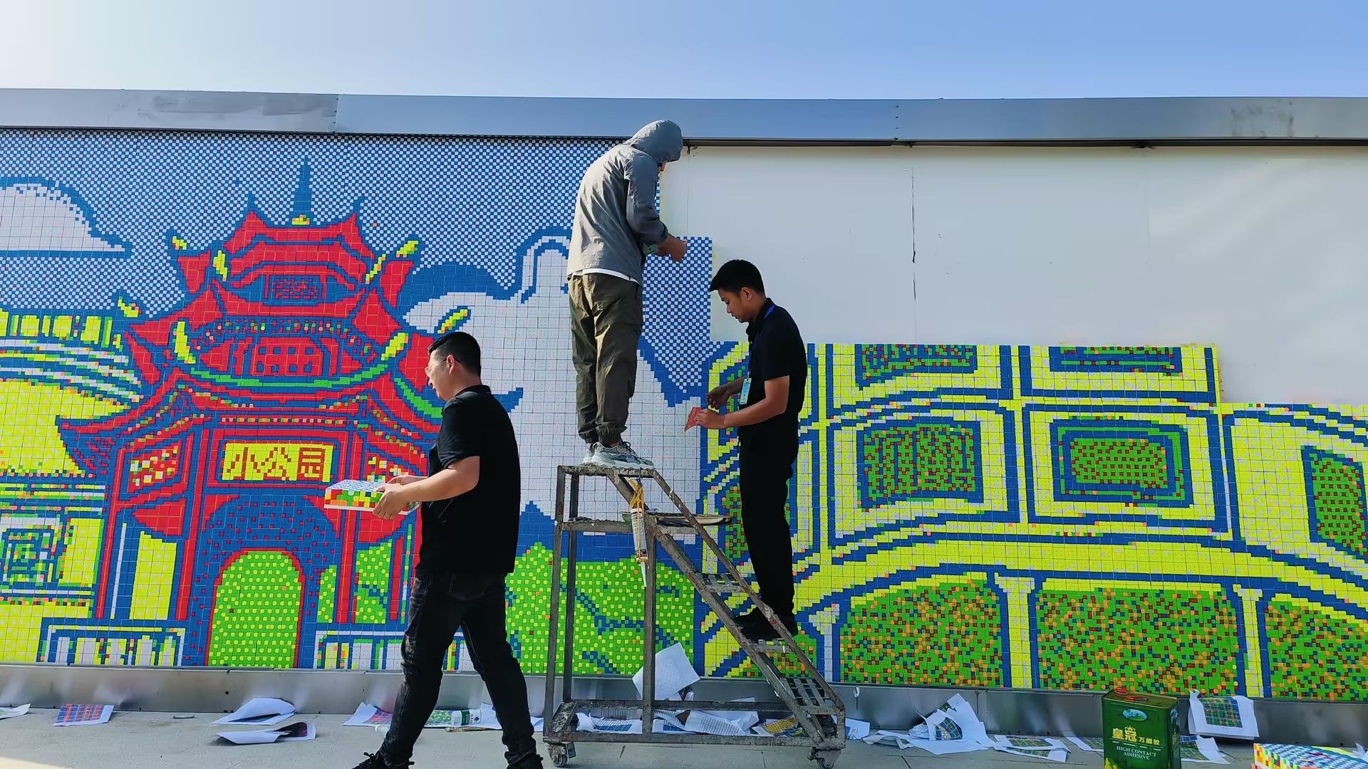 這百余米的畫(huà)卷生動(dòng)展現(xiàn)了汕頭多處著名旅游景點(diǎn)、歷史建筑、特色風(fēng)俗,北回歸線標(biāo)志塔、南澳燈塔、澄海冠山書(shū)院等地標(biāo)性景點(diǎn)躍然墻上,紅頭船、英歌舞、蜈蚣舞等潮汕經(jīng)典元素栩栩如生,更有“超級(jí)飛俠”“喜羊羊”等廣受歡迎的IP角色穿插其中,為孩子們帶來(lái)無(wú)限驚喜。魔方積木墻背面則是用積木拼制了80家知名企業(yè)的LOGO,向游客們展示澄海玩具產(chǎn)業(yè)品牌建設(shè)的成果。