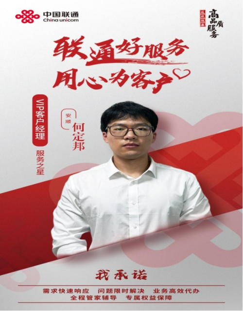 關(guān)嶺聯(lián)通VIP客戶經(jīng)理何定邦,自2023年入職公司以來,他努力學(xué)習(xí)、力爭(zhēng)全方位發(fā)展,不僅學(xué)會(huì)公司各項(xiàng)業(yè)務(wù)知識(shí)及操作,還掌握了精湛的客戶服務(wù)技能。他始終以“客戶為尊、服務(wù)卓越”的服務(wù)理念,真誠(chéng)為每一位客戶處理、解決問題,贏得廣大客戶的認(rèn)可及贊譽(yù)。