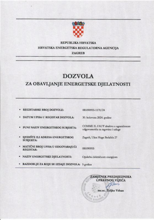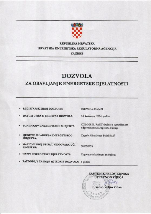 3. CILF在電力持有整個歐盟地區(qū)買賣售電的資質,并可選擇擴展至整個歐盟區(qū)域。克羅地亞電力供應許可證(克羅地亞僅14家擁有該證)和電力交易許可證(克羅地亞僅49家擁有該證),這充分證明了其在電力市場的專業(yè)地位和實力。