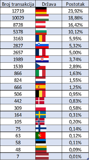 克羅地亞與其他歐盟國家之間的交易百分比