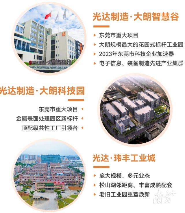 目前,光達制造在洪梅、寮步、大朗、塘廈、茶山等鎮(zhèn)均有在運營的新一代工業(yè)園區(qū),此外還在萬江、厚街等鎮(zhèn)街加快建設智慧谷項目。在大朗鎮(zhèn),光達制造更是形成“一鎮(zhèn)三園”多樣化園區(qū)布局,除光達制造·大朗智慧谷外,還有金屬表面處理園區(qū)新標桿大朗科技園,以及擁有龐大規(guī)模和多元業(yè)態(tài)的光達制造·瑋豐工業(yè)城。