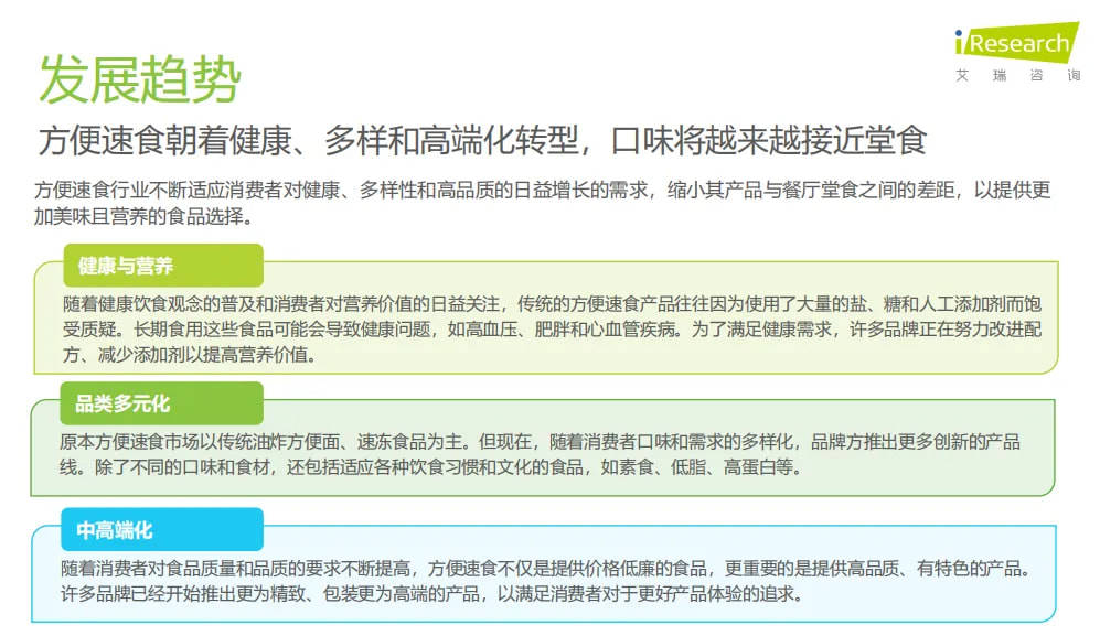 一是行業(yè)發(fā)展趨勢和消費(fèi)者需求端的變化。從大盤上來看,國內(nèi)的方便速食行業(yè)在近幾年一直朝著多樣化和高端化轉(zhuǎn)型。同時(shí)從消費(fèi)側(cè)來說,艾瑞咨詢數(shù)據(jù)顯示,79%的消費(fèi)者購買方便速食產(chǎn)品的原因是食用方便,但在新銳白領(lǐng)和中產(chǎn)人群中,人們已經(jīng)不滿足速食產(chǎn)品里只有簡單的調(diào)料包,愿意為更豐盛的食用體驗(yàn)和更高品質(zhì)的產(chǎn)品買單。
