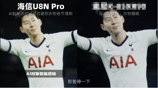 視頻還對比了比賽場景,海信電視U8通過AI畫質(zhì)芯片,可以AI智能感知即刻響應(yīng),精準識別體育場景,對屏幕亮度、色溫、人臉膚色等畫質(zhì)參數(shù)進行實時調(diào)校。無論在什么畫面暫停,球衣、球員、球場都呈現(xiàn)得更加清晰、細膩、真實,讓觀賽體驗更加沉浸。相比之下,國外S品牌雖然畫面表現(xiàn)不錯,但在暫停時畫面明顯模糊、有殘影,根源就是實時優(yōu)化調(diào)校方面略顯遜色。