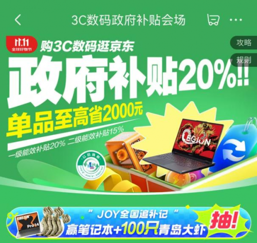 消費(fèi)者在京東不僅能享受到“又便宜又好”的購(gòu)物體驗(yàn),更能輕松享受政府補(bǔ)貼。據(jù)了解,今年雙11來京東下單3C數(shù)碼產(chǎn)品,領(lǐng)取政府補(bǔ)貼最多能減2000元,甚至還有機(jī)會(huì)抽取筆記本、100只清遠(yuǎn)雞、100只青島大蝦、100只北京烤鴨等地方農(nóng)特產(chǎn)品。