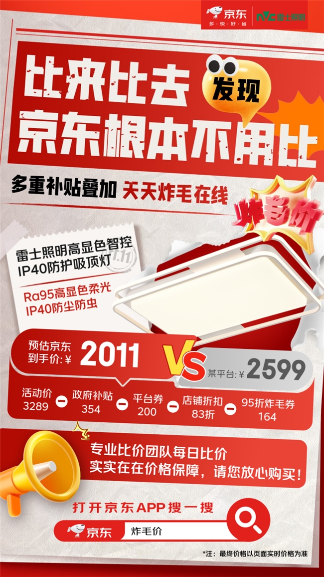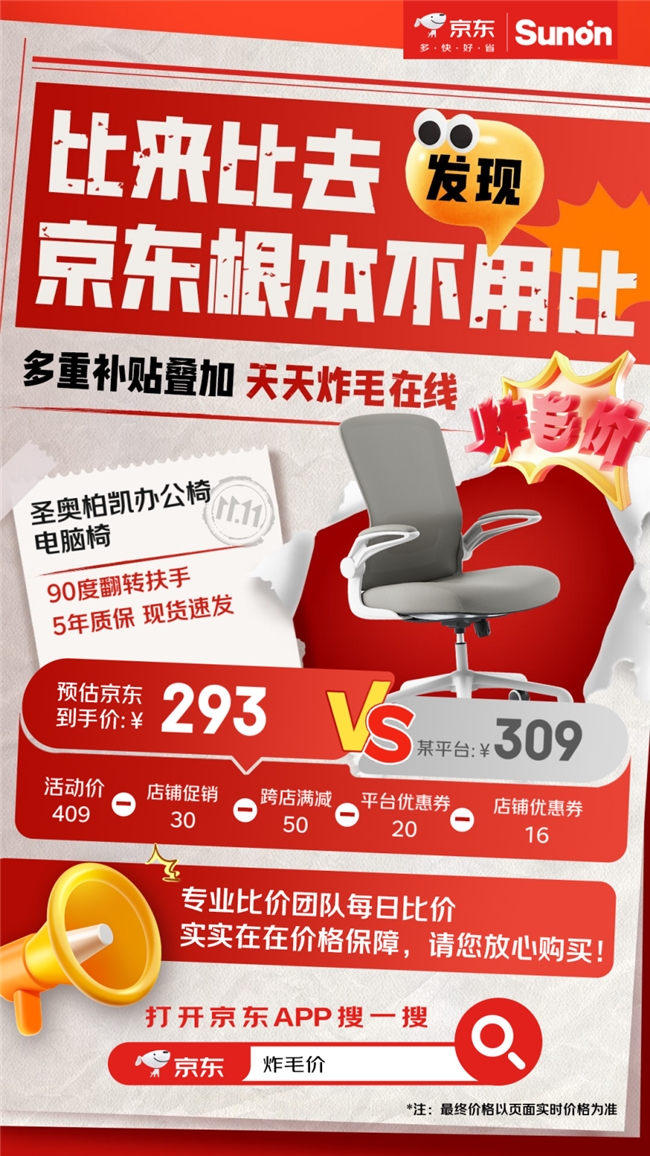 相較于秋冬季在凜冽寒風(fēng)中city walk,不少人更愛躺在沙發(fā)、窩在椅子中“貓冬”,添置護(hù)腰電腦椅、護(hù)眼吸頂燈等大件排進(jìn)日程。貼合大眾對宅家“貓冬”的熱切期盼,今年京東11.11建材家具特別推出炸毛價專場活動,帶來9.5折炸毛券,以及可疊加的至高立減20%的政府補(bǔ)貼、PLUS專屬補(bǔ)貼、平臺補(bǔ)貼等多重福利。為了讓大家真正買到低價爆款,京東還成立了專業(yè)比價團(tuán)隊,每天瞄準(zhǔn)其他平臺價格實時比較,價格瘋到“炸毛”,做到超值爆款不止價格低,比價后價格更低!
