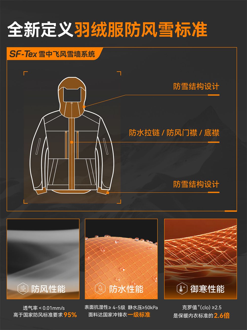 雪中飛重新定義羽絨服的“防風(fēng)雪”標(biāo)準(zhǔn),憑借其高功能價(jià)值嶄露頭角、不僅僅注重行業(yè)普遍實(shí)施的三防功能,還通過與廣檢攜手引入創(chuàng)新的“防風(fēng)雪”標(biāo)準(zhǔn),打造出全新的風(fēng)雪墻系統(tǒng)結(jié)構(gòu),實(shí)現(xiàn)防風(fēng)、防水、保溫、遠(yuǎn)紅外發(fā)熱和防風(fēng)雪保暖等多項(xiàng)功能,每一款防風(fēng)雪羽絨服都經(jīng)過環(huán)境倉驗(yàn)證和真人實(shí)測,確保防風(fēng)保暖性能卓越,安心過冬,無懼嚴(yán)寒。這些創(chuàng)新使得雪中飛的外套不僅能夠讓穿著者輕松應(yīng)對多變的冬季戶外環(huán)境,也能滿足日常都市生活中的時(shí)尚需求,享受冬日的無限樂趣。