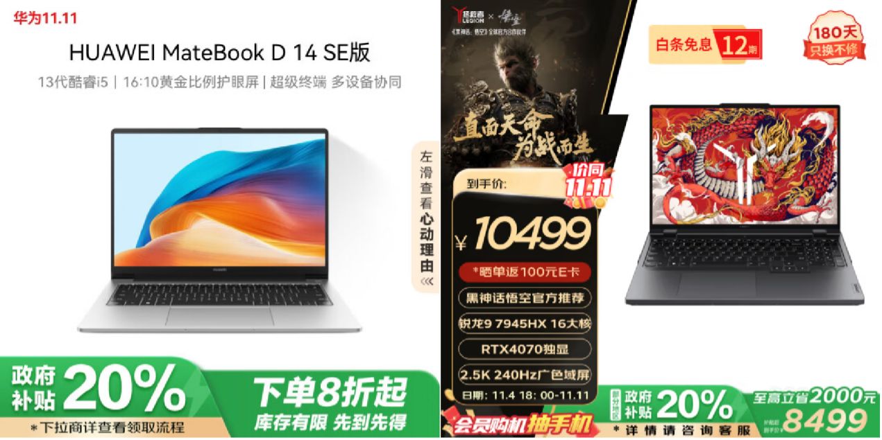 如果想要換新電腦,那就可以選擇來京東11.11使用政府補(bǔ)貼下單。華為MateBook D 14 SE 2024筆記本就是不錯(cuò)的選擇,輕約1.39kg,薄約15.9mm,多設(shè)備協(xié)同,支持超級(jí)中轉(zhuǎn)站,更好用,i5 16G 512G 皓月銀原價(jià)4199元,京東直降300元,享滿200減20補(bǔ)貼,再享政府補(bǔ)貼額外立減775.8元,京東11.11到手價(jià)3103.2元。游戲本可以選擇聯(lián)想拯救者R9000P 16英寸游戲本,采用銳龍9 7945HX移動(dòng)處理器輕松應(yīng)對(duì)游戲場(chǎng)景,專業(yè)電競(jìng)屏帶來清晰、流暢游戲畫面,R9-7945HX 16G 1T RTX4070 2.5K 240Hz 灰京東原價(jià)10499元,享政府補(bǔ)貼額外立減2000元,京東11.11到手價(jià)8499元。