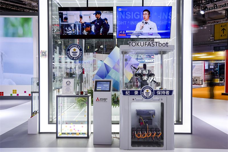 作為三階魔方還原的世界紀錄保持者,TOKUFASTbot僅用0.305秒還原魔方。三菱電機高速高精度定位技術、AI色彩識別算法等尖端技術,實現(xiàn)了設備之間的高速通訊,為工業(yè)化自動領域帶來無限可能。