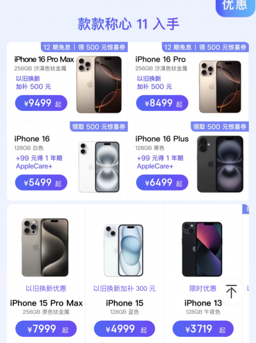 具體來看,iPhone 16系列領(lǐng)券立減500元,還可疊加1100元以舊換新補(bǔ)貼,相當(dāng)于直降1600元,而且還可價(jià)保至11月11日。買iPhone 16 Pro除了500元驚喜券外,京東還提供500元以舊換新補(bǔ)貼,疊加使用到手更劃算,而且還可享12期免息。除了iPhone 16外,iPhone 15系列也是不錯(cuò)的選擇。其中 iPhone 15到手價(jià)4999元起,iPhone 15 Pro Max到手價(jià)7999元起,以舊換新同樣可享受優(yōu)惠。