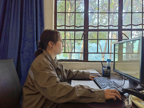 (圖為溥云灝在進(jìn)行數(shù)據(jù)錄入)