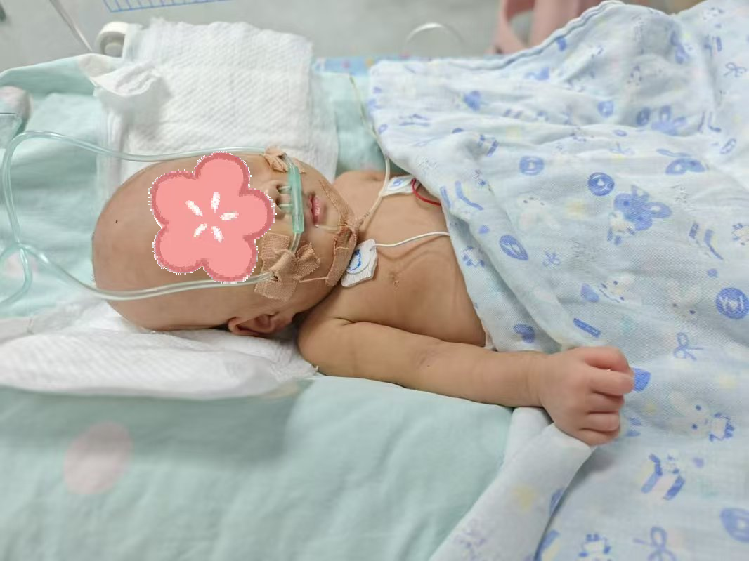 其次是呼吸關。由于早產兒的肺發(fā)育很不成熟,需要長時間的呼吸機支持。寶寶在入院9天后,曾出現進一步加重的呼吸困難。莊嚴醫(yī)生團隊決定給寶寶做有創(chuàng)呼吸支持,經過了大半個月的治療,寶寶才逐漸過渡為無創(chuàng)呼吸支持。