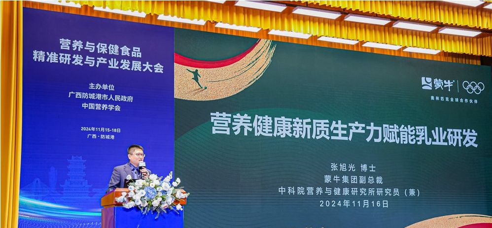 11月15日-17日,由廣西防城港市政府與中國營養(yǎng)學(xué)會聯(lián)合主辦、蒙牛集團等單位承辦的“營養(yǎng)與保健食品精準(zhǔn)研發(fā)與產(chǎn)業(yè)發(fā)展大會”在廣西防城港舉行。本次大會匯聚了來自中國科協(xié)、國家衛(wèi)健委、國內(nèi)外知名院士、專家學(xué)者,共同探討營養(yǎng)與保健食品、精準(zhǔn)營養(yǎng)及基礎(chǔ)營養(yǎng)等領(lǐng)域的最新科研成果與行業(yè)趨勢,旨在以新質(zhì)生產(chǎn)力為核心,推動營養(yǎng)健康產(chǎn)業(yè)實現(xiàn)高質(zhì)量發(fā)展。蒙牛集團深度參與,全面分享蒙牛研發(fā)創(chuàng)新的最新成果,充分展現(xiàn)蒙牛在營養(yǎng)健康領(lǐng)域的深厚底蘊和前瞻視野。