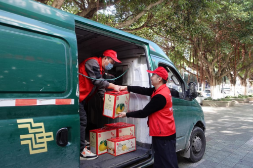圖為“香溢”志愿者利用沿線送貨車輛捎帶特色農(nóng)產(chǎn)品