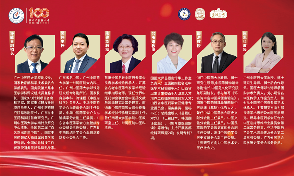 參加論壇的嘉賓有廣州中醫(yī)藥大學(xué)副校長(zhǎng)許能貴、廣東省名中醫(yī),廣州中醫(yī)藥大學(xué)第一附屬醫(yī)院大內(nèi)科主任,廣州中醫(yī)藥大學(xué)鄧鐵濤研究所常務(wù)副所長(zhǎng)吳偉、國(guó)醫(yī)大師路志正傳承人路喜善教授、國(guó)醫(yī)大師呂景山傳承人呂玉娥教授、國(guó)醫(yī)大師朱良春傳承人朱建華教授、浙江中醫(yī)藥大學(xué)鄭洪教授、廣州中醫(yī)藥大學(xué)教授國(guó)醫(yī)大師鄧鐵濤師承團(tuán)隊(duì)負(fù)責(zé)人陳凱佳、香港中醫(yī)藥科技學(xué)院院長(zhǎng),香港中文大學(xué)莫飛智副教授、至誠(chéng)金方董事長(zhǎng)鄧任斯先生等……