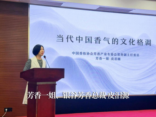 銀谷芳香總裁、中國(guó)香妝協(xié)會(huì)芳香產(chǎn)業(yè)專委會(huì)常務(wù)副主任委員、芳香一姐皮汨源女士與會(huì)期間發(fā)表了《當(dāng)代中國(guó)香氣的文化格調(diào)》主題演講。