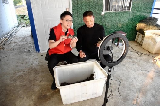 (圖為志愿者攜手村支書(shū)開(kāi)啟直播)