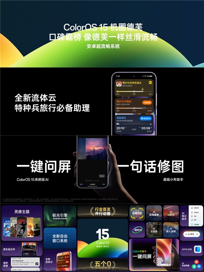 系統(tǒng)集成多項(xiàng)AI功能,包括智慧文檔和智慧便簽,提升辦公效率。AI識(shí)圖幫寫(xiě)功能支持10余個(gè)社交和電商平臺(tái),提供5種文案風(fēng)格。整合超級(jí)小布助手,通過(guò)"一鍵問(wèn)屏"功能滿足各類(lèi)識(shí)別需求。