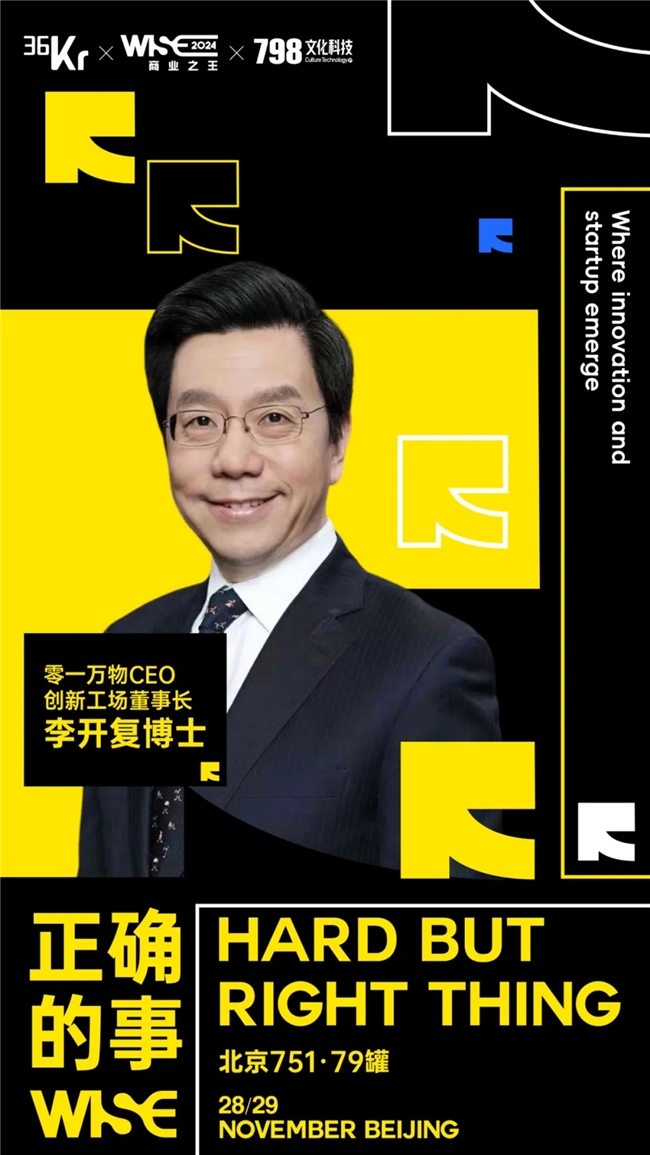 11月28日-29日,36氪WISE2024 商業(yè)之王大會將在751園區(qū)79罐舉辦。我們帶著大量的問題出發(fā),試圖去回答什么是“正確的事”。