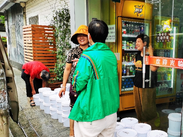 圖為“香溢”志愿者幫忙擦拭便民柜