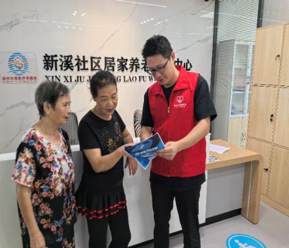 圖為志愿者向社區(qū)群眾開展反詐宣傳