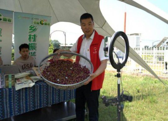 圖為志愿者開(kāi)展百合直播帶貨活動(dòng)