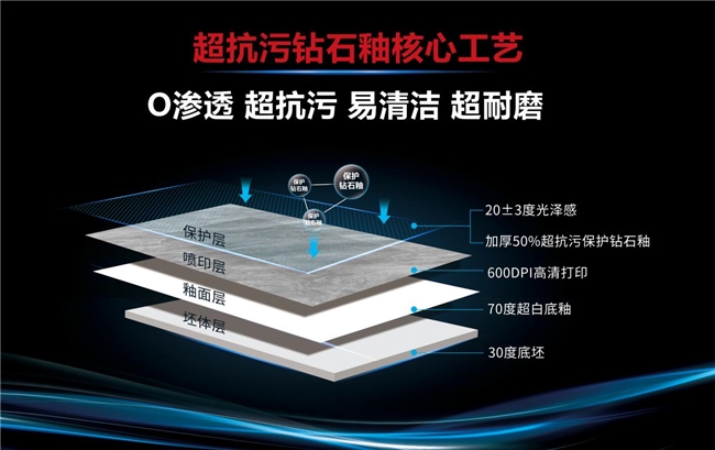 在超耐磨技術(shù)取得突破后,作為行業(yè)研發(fā)技術(shù)領(lǐng)軍企業(yè),大角鹿再度出手,“超抗污鉆石釉”國家專利技術(shù)再次顛覆了行業(yè),在瓷磚耐磨性能上再探高峰的同時,更真正意義上實現(xiàn)了瓷磚的超抗污能力。