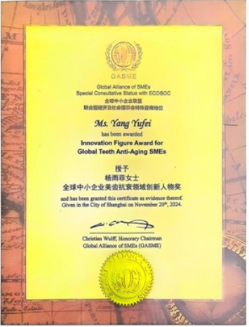 楊雨菲女士被授予全球中小企業(yè)美齒抗衰領(lǐng)域創(chuàng)新人物獎