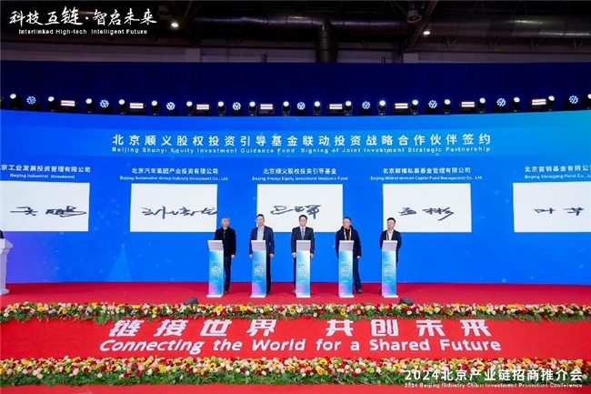 推介會上共達成三項正式簽約,務實推進國際交流合作,為北京產業(yè)鏈發(fā)展注入新動能。北京市貿促會與國家發(fā)展和改革委員會國際合作中心簽署戰(zhàn)略合作協(xié)議,北京國際商會與國際展覽與項目協(xié)會(IAEE)簽署友好合作諒解備忘錄。北京順義區(qū)政府投資引導基金揭牌暨聯(lián)動投資戰(zhàn)略合作伙伴簽約,該引導基金注冊資本10億元,遠期規(guī)模為100億元。