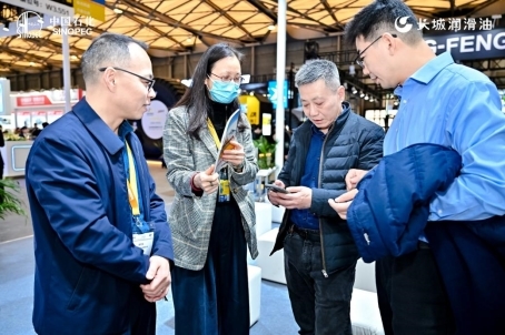 與國內(nèi)企業(yè)在中國石化長城潤滑油展臺交流咨詢