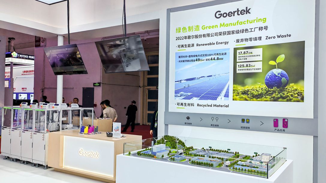 綠色制造在全球范圍內(nèi)正逐漸成為工業(yè)發(fā)展的重要趨勢(shì),歌爾將綠色發(fā)展作為未來(lái)戰(zhàn)略發(fā)展的重點(diǎn)之一,不斷研發(fā)節(jié)能環(huán)保的產(chǎn)品和解決方案,深化能源管理,實(shí)施節(jié)能減排措施,提高清潔能源的利用率,持續(xù)探索清潔技術(shù)。本次展會(huì),歌爾展示了可再生能源、零填埋、材料回收等方面取得的成果:光伏屋頂總裝機(jī)容量已達(dá)49.37兆瓦,獲得廢棄物零填埋(鉑金級(jí))認(rèn)證,零填埋項(xiàng)目覆蓋面積達(dá)125.8萬(wàn)㎡,在客戶合作項(xiàng)目中開(kāi)展材料回收專項(xiàng),攜手合作伙伴共同推進(jìn)綠色制造。