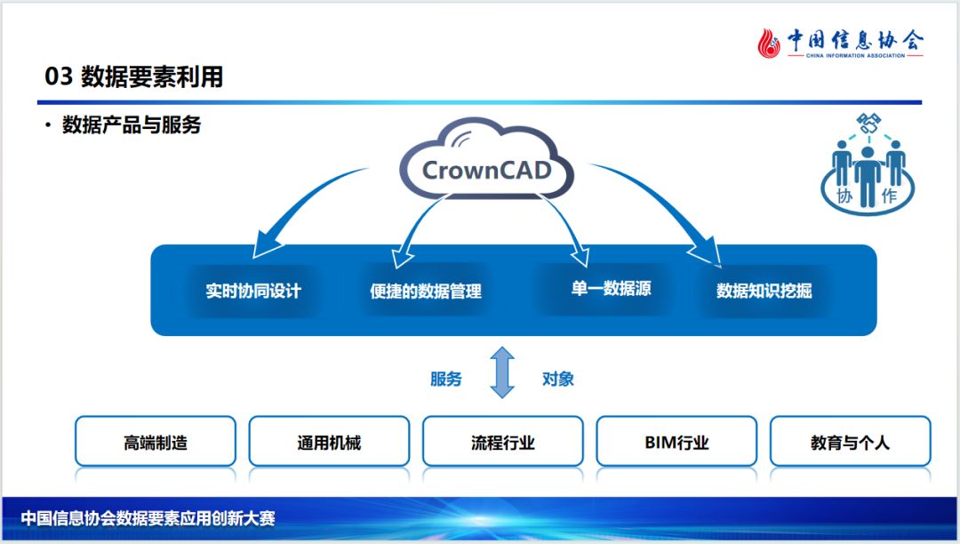 參賽團隊代表CrownCAD前沿技術(shù)總監(jiān)彭昊博士提到:“CrownCAD充分利用云技術(shù),實現(xiàn)數(shù)據(jù)安全高效的云端存儲、云端運行?;趶姶蟮脑O(shè)計能力以及數(shù)據(jù)兼容能力,CrownCAD支持復(fù)雜三維模型設(shè)計與存儲,形成大量的涵蓋零件、設(shè)備、圖紙、鈑金件、焊接件、國標件、石化件等多種工業(yè)設(shè)計數(shù)據(jù)集,以協(xié)同設(shè)計+海量數(shù)據(jù)集驅(qū)動企業(yè)的業(yè)務(wù)創(chuàng)新。打破數(shù)據(jù)孤島,用戶在任意地點和終端打開瀏覽器( www.crowncad.com)即可進行實時的基于單一數(shù)據(jù)源的協(xié)同設(shè)計,并能以CrownCAD為同一數(shù)據(jù)源基體,實現(xiàn)PLM、ERP全流程數(shù)據(jù)流轉(zhuǎn)?!?/p>