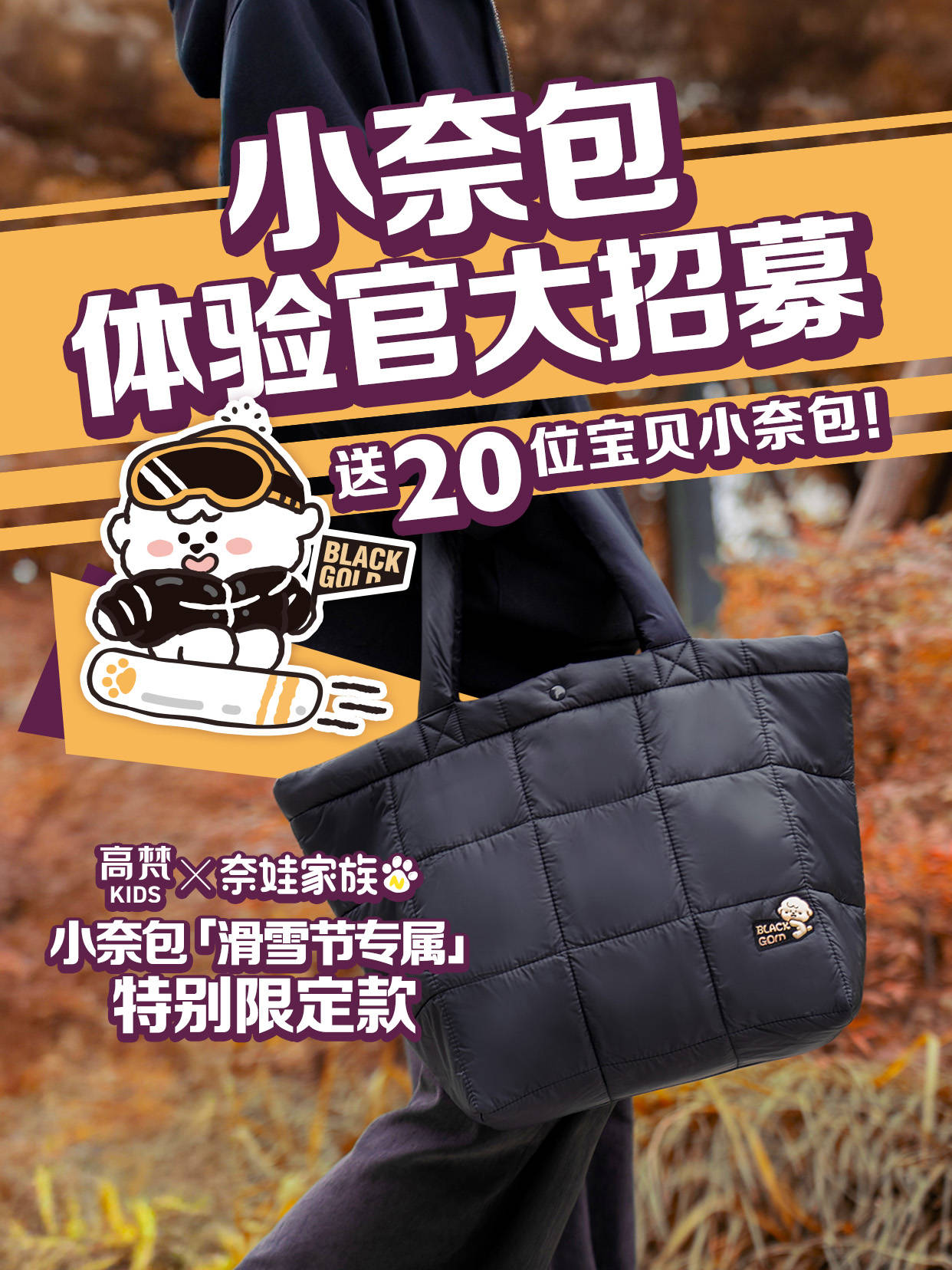 除了打卡點(diǎn)本身的造型可愛有趣外,還有線上線下聯(lián)合打卡送長(zhǎng)白山限定小奈包活動(dòng)。據(jù)了解,這款高梵KIDS和奈娃家族合作的長(zhǎng)白山限定小奈包,是高梵KIDS和奈娃家族為長(zhǎng)白山滑雪節(jié)精心設(shè)計(jì)制作的,不僅外觀萌趣十足,無論滑雪還是日常出行,都是冬日的百搭神器。