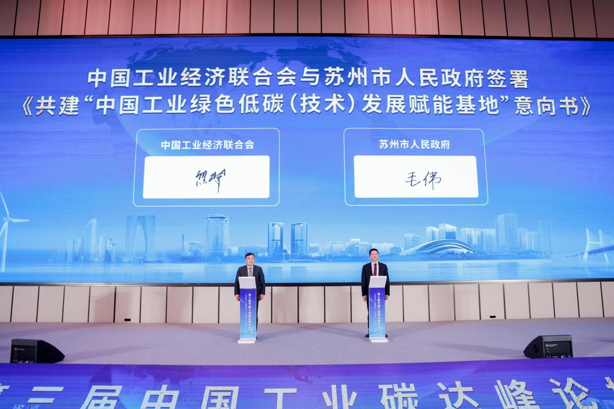 論壇上,中國工經聯(lián)黨委書記、執(zhí)行副會長兼秘書長熊夢和蘇州市副市長毛偉代表中國工經聯(lián)和蘇州市人民政府共同簽署了《共建“中國工業(yè)綠色低碳(技術)發(fā)展賦能基地”合作意向書》?;貙⒁劳刑K州市豐富多元的產業(yè)基礎,以及中國工業(yè)碳達峰“領跑者”企業(yè)的綠色技術、產品和整體解決方案,以需求為導向,共同在長三角地區(qū)打造工業(yè)綠色低碳發(fā)展的新高地。