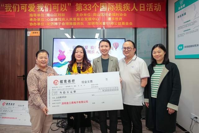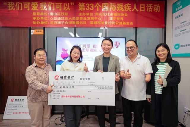 同時,主辦方還為泰得思科技有限公司和金三鷹電子有限公司頒發(fā)了“愛心企業(yè)”牌子,以表彰他們的慷慨善舉?,F(xiàn)場,深圳市富喬米業(yè)有限公司也為殘疾朋友們捐贈了大米,表達(dá)了他們對殘疾人的深切關(guān)愛與支持。
