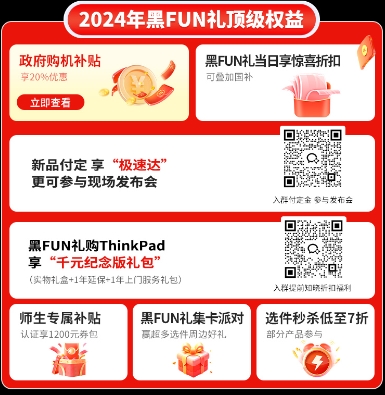 在ThinkPad黑FUN禮活動期間,消費(fèi)者可享受多重權(quán)益,以極具吸引力的方式增強(qiáng)購機(jī)體驗(yàn)?;顒犹峁┤瓯c(diǎn)價(jià)的優(yōu)惠,使得購買ThinkPad產(chǎn)品變得更加經(jīng)濟(jì)實(shí)惠。此外,用戶可以疊加享受國家補(bǔ)貼,讓購機(jī)成本進(jìn)一步降低,帶來更多的實(shí)際回饋。