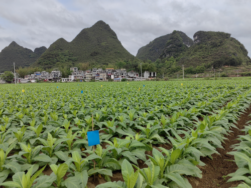 圖為使用黃板、藍板防治的煙田 覃怡婧/攝