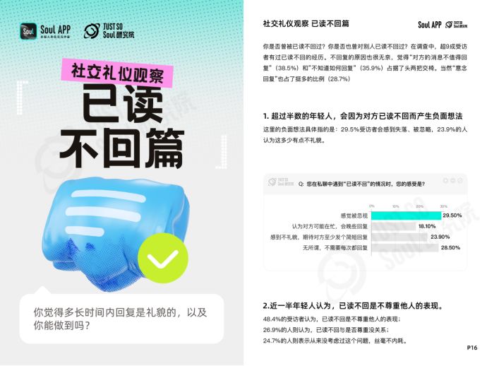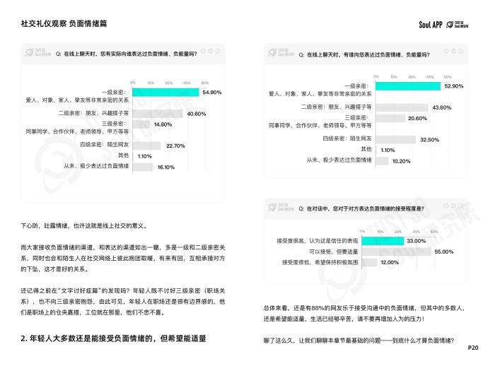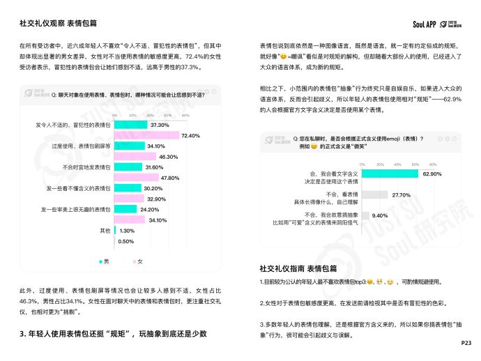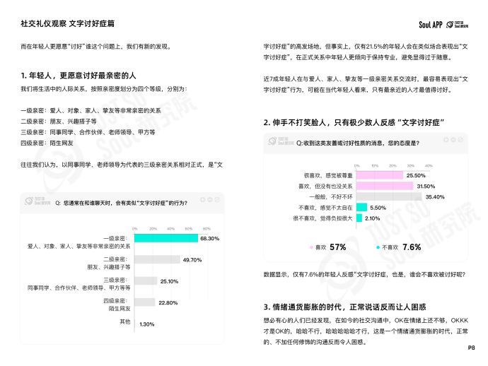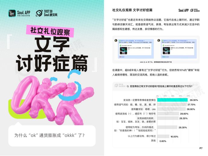 近日,基于Soul App,Just So Soul研究院面向年輕人發(fā)布“線上社交禮儀”調(diào)研,回收3064份有效問(wèn)卷,其中Z世代(95后)占比84.5%,00后占比43.2%,結(jié)合Soul平臺(tái)的內(nèi)容數(shù)據(jù),正式發(fā)布《Z世代線上社交禮儀報(bào)告》(以下簡(jiǎn)稱“報(bào)告”)。