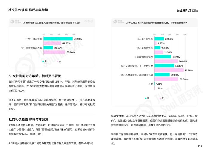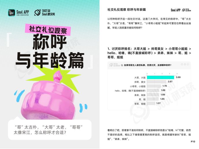 Just So Soul研究院通過(guò)報(bào)告,清晰化年輕人心中關(guān)于“社交禮儀準(zhǔn)則”的隱約共識(shí),提供新知的同時(shí),也為與Z世代的溝通提供解決方案,因此在每一章節(jié)的最后,報(bào)告附上具有實(shí)操性的“社交禮儀指南”,合計(jì)24條——