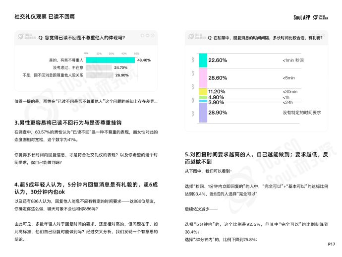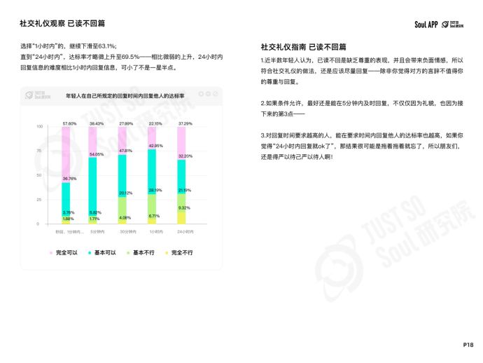 超5成年輕人認(rèn)為,5分鐘內(nèi)回復(fù)消息是有禮貌的,超6成認(rèn)為,30分鐘內(nèi)也ok