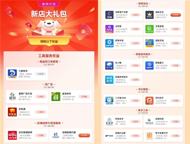 除了上述全新重磅權益外,京東“春曉計劃”還迭代更新了一系列以往備受新商家青睞的權益,進一步增強對新入駐商家的支持力度。
