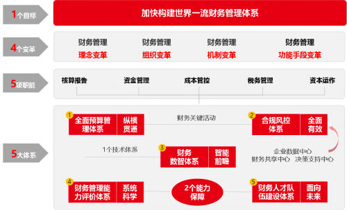 國(guó)家相關(guān)部門印發(fā)的《關(guān)于中央企業(yè)加快建設(shè)世界一流財(cái)務(wù)管理體系的指導(dǎo)意見(jiàn)》,為財(cái)務(wù)數(shù)字化轉(zhuǎn)型指明了方向。該管理體系強(qiáng)調(diào)以新發(fā)展理念為指導(dǎo),通過(guò)財(cái)務(wù)管理理念、組織、機(jī)制和手段的全面變革,實(shí)現(xiàn)財(cái)務(wù)管理的高質(zhì)量發(fā)展。在這一體系中,以“規(guī)范、精益、集約、穩(wěn)健、高效、智慧”為標(biāo)準(zhǔn),以數(shù)字技術(shù)與財(cái)務(wù)管理深度融合為抓手,固根基、強(qiáng)職能、優(yōu)保障,有力支撐服務(wù)國(guó)家戰(zhàn)略,有力支撐建設(shè)世界一流企業(yè),有力支撐增強(qiáng)國(guó)有經(jīng)濟(jì)競(jìng)爭(zhēng)力、創(chuàng)新力、控制力、影響力、抗風(fēng)險(xiǎn)能力。