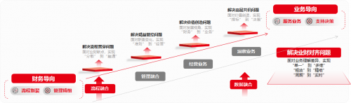 業(yè)財(cái)融合戰(zhàn)略路徑是一個(gè)從財(cái)務(wù)導(dǎo)向逐步過(guò)渡到業(yè)務(wù)導(dǎo)向的綜合性過(guò)程。該路徑首先聚焦于解決流程割裂問(wèn)題,通過(guò)整合分散的業(yè)務(wù)點(diǎn),實(shí)現(xiàn)流程的融合與精細(xì)化管理,確保財(cái)務(wù)流程的高效與準(zhǔn)確。隨后,進(jìn)入經(jīng)營(yíng)業(yè)務(wù)階段,面對(duì)價(jià)值創(chuàng)造問(wèn)題,財(cái)務(wù)與業(yè)務(wù)緊密合作,實(shí)現(xiàn)從“財(cái)務(wù)”到“業(yè)務(wù)”的轉(zhuǎn)變,最終,達(dá)到業(yè)務(wù)導(dǎo)向階段。
